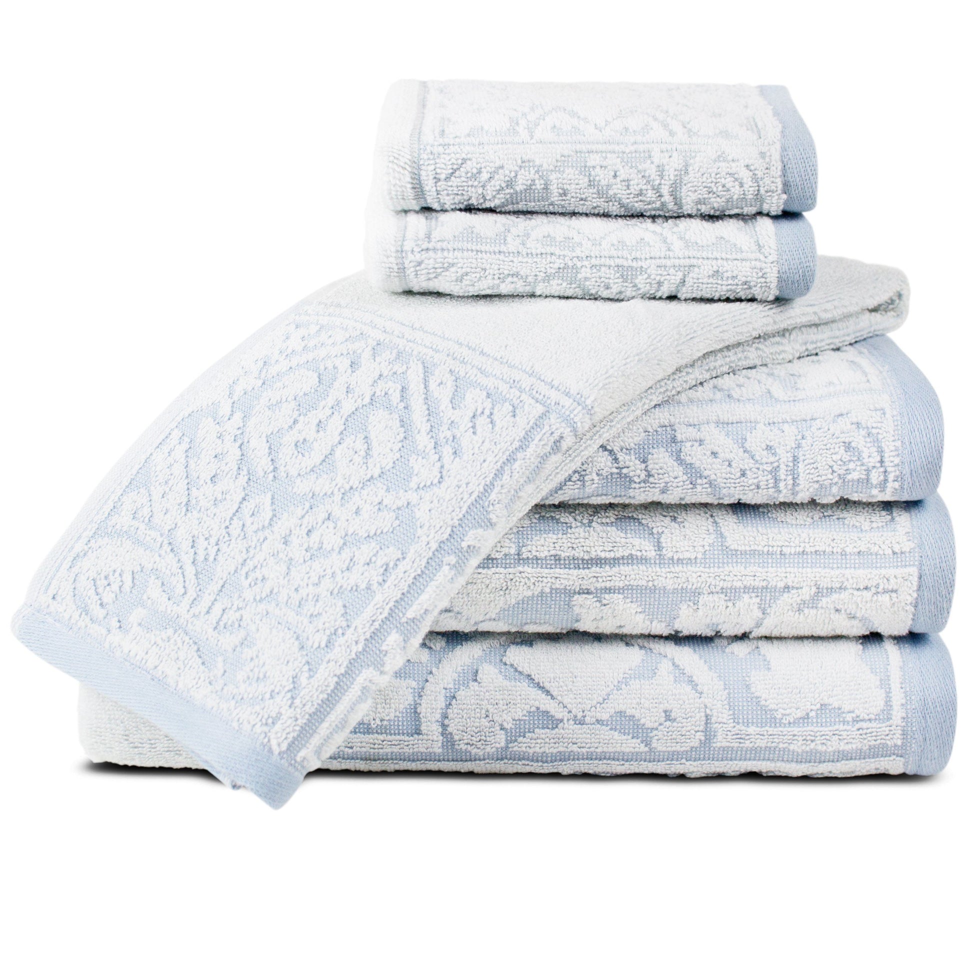 6 Piece: 2 bath towels, 2 hand towels, and 2 wash cloths